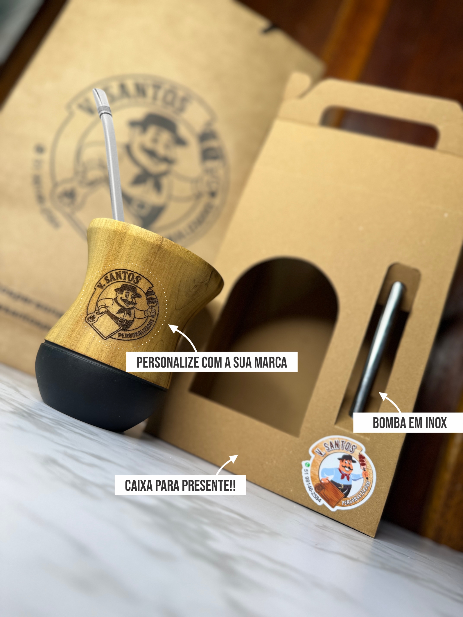 A Cuia em Madeira Imbuia da Vsantos é um brinde corporativo de alto valor percebido, unindo tradição e sofisticação. Produzida com Imbuia selecionada e acabamento premium, recebe gravação a laser da sua marca ou nomes individuais para ações de relacionamento, eventos e kits de boas-vindas.